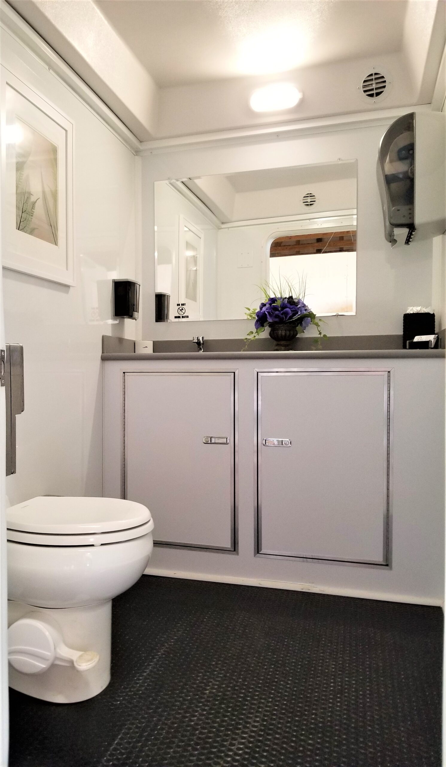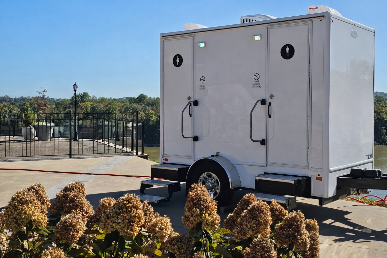Water requirement: Garden hose spigot within 100’ of trailer or on-board freshwater tank. Fresh water tank capacity:105-125 gallons