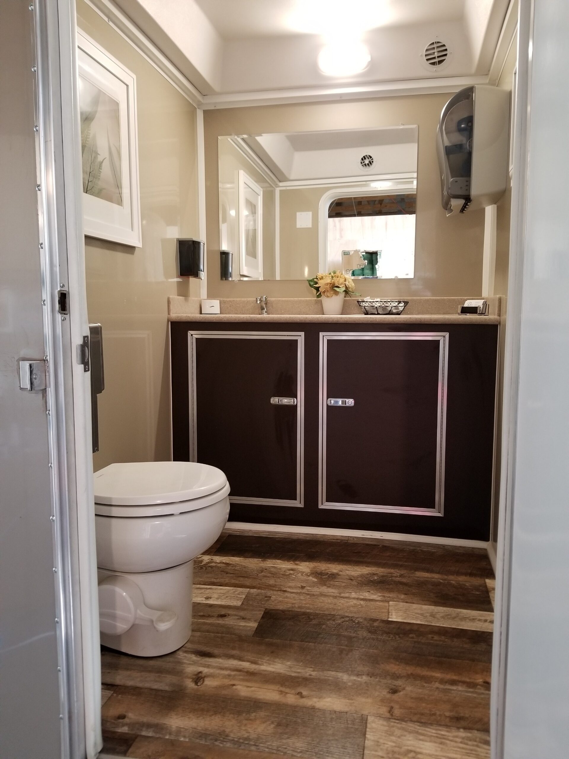 Dimensions: Height: 11’ Width: 8-12’ Length: 15-17’ Entry doors are on the passenger side.